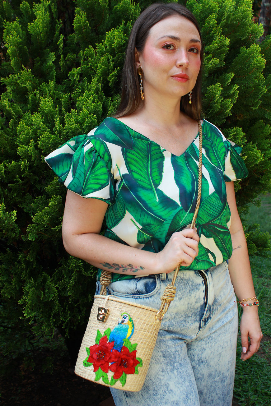 Cada uno de nuestros bolsos es una obra de arte, elaborada a mano con dedicación y pasión por mujeres artesanas colombianas. Desde Usiacurí, Atlántico, Lina teje con maestría este bolso en fibra de iraca, aportando la esencia de nuestras raíces. Marina y Alejandra, en una danza de colores, realizan el bordado en técnica freestyle, imprimiendo su creatividad y destreza en cada puntada. Finalmente, en Andes, Antioquia, Elizabeth añade el toque final con pedrería, elevando cada pieza a un nuevo nivel de elegancia.